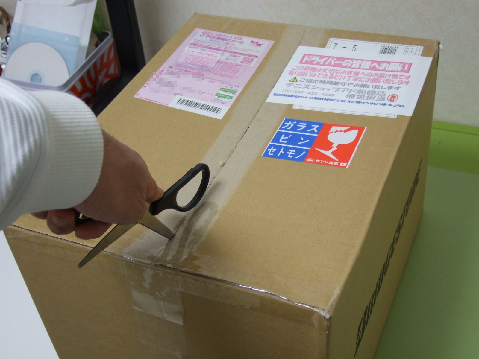 ↓中を傷つけないよう、はさみで開けます。ドキドキ。通販って、